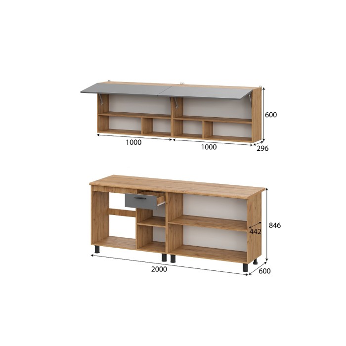 - Столешница «Дуб Вотан» толщиной 26 мм входит в комплект.