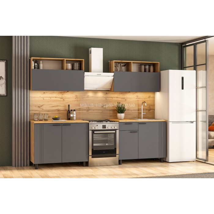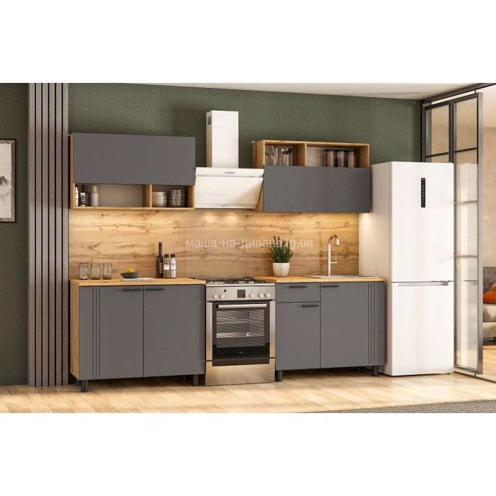 Кухня «Монако» Белая и Графит — это готовый комплект мебели для кухни длиной 2 метра. Фасад выполнен из МДФ.