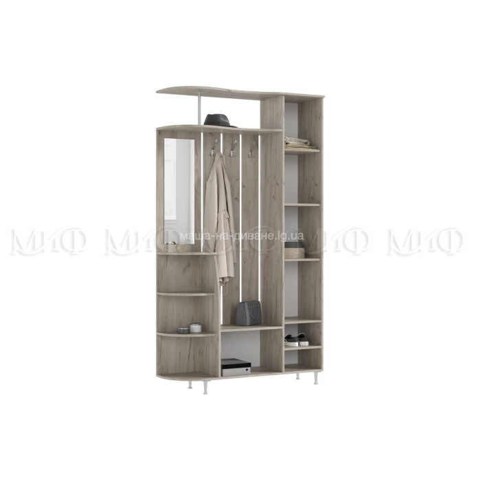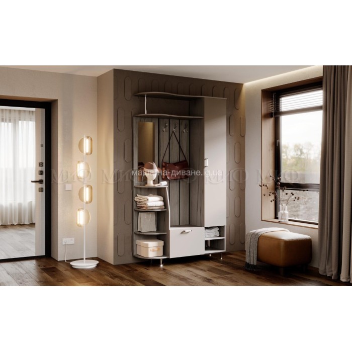 Отличается малыми габаритами, но достаточной шириной для того, чтобы вместить в себя минимум необходимых секций. Поможет правильно организовать пространство прихожей и эффектно оформить малую по площади входную зону.